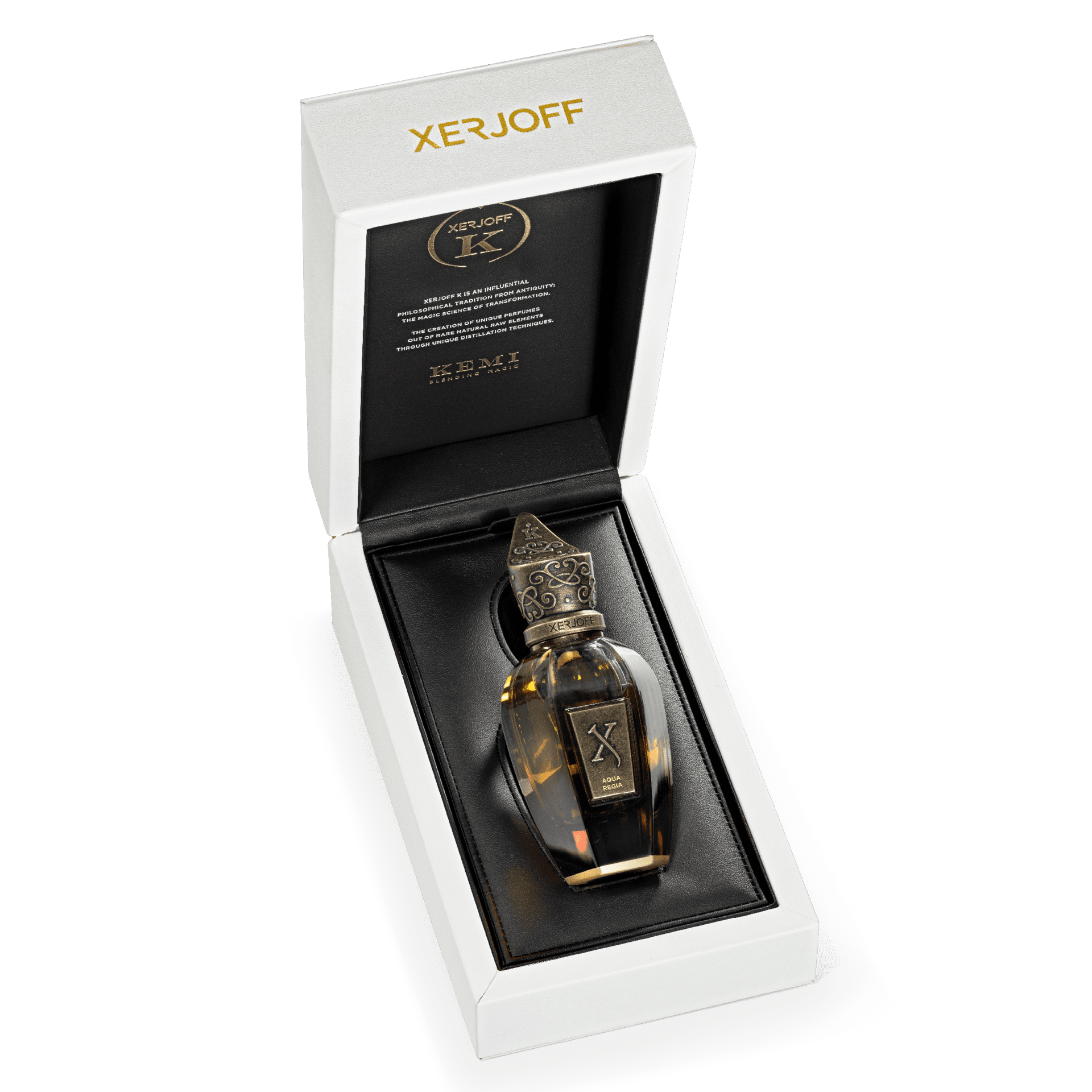 XERJOFF AQUA REGIA מתוך KEMI COLLECTION הוא ניחוח יוניסקס שהושק בשנת 2023, המאופיין בפרופיל ריח יוקרתי ומורכב. הבושם נפתח עם תווים עליונים של ברגמוט קלברי, דומדומניות שחורות ואקורד עור. תווי לב הם פטשולי סינגפורי, סיגלית, שורש אוריס ואקורד קרמל, בעוד תווי הבסיס הם ונילה מדגסקר, מאסק ועץ ארז. הבלנד משלב רעננות הדרית עם גוונים עשירים ומתוקים, היוצרים ארומה מתוחכמת ומפתה המתאימה למגוון אירועים. אקווה רג'יה מעורר את כל מה שאצילי בעולם האלכימי. הוא מעלה באוב את סנוור הזהב ואת החוסן של הפלטינה ומטיל כישוף עוצמתי על כל מה שהוא נוגע בו.